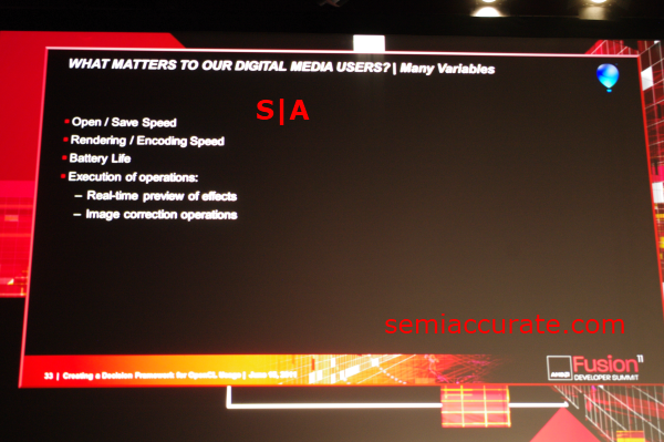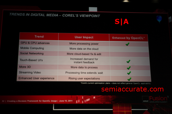 An interesting, if predictable, factoid that came out of Brown’s brief discussion of 3D was that it doubled, or nearly doubled, the amount of data that needed processing. We also learned that most of the real-time post-processing effects in Corel studio took about 40 seconds to render before OpenCL was implemented. He also noted that what the consumer expects from netbooks and tablets these days is the same experience they expect out of regular PCs. This is a major change from the early days of netbooks when users accepted the fact that they were useless for anything more than web browsing, and even that was touch and go.
