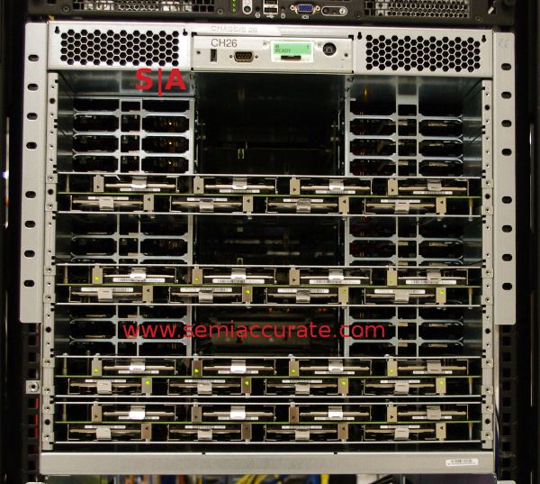 If you see a SM10000 open, you will notice how much empty space there is inside, as well as how empty the boards that occupy it are. It doesn’t take a genius to figure out that you could probably add 50% more CPU cards to the system. If you think about it, 192 16 socket boards filled with the upcoming 22nm 8 core ‘server’ Atoms, means that you are well over 2000 cores per U. Lets see anyone else top that without pulling a GTX590.S|A