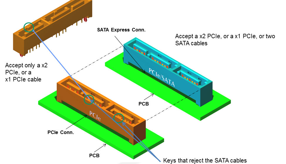 The connector group is still working on the exact design of the connectors, but in the future we will have a common interface for PCI Express and SATA on the motherboards and it will be possible to use the connectors for either device.