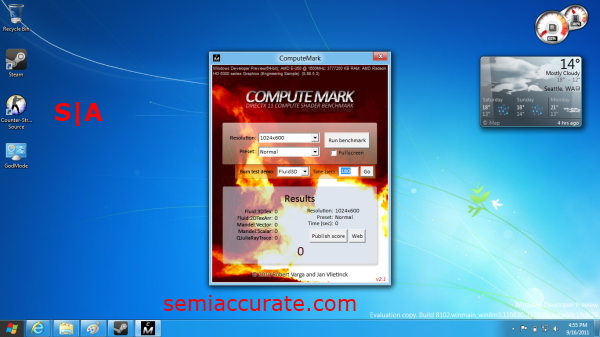 Now here is where things go off the deep end; ComputeMark. It’s hard to learning anything from those results other than E-350’s are slow at compute tasks, and ComputeMark does not get along very well with Windows 8. It should be noted that all of the ComputeMark tests executed just fine in the Windows 8 environment, something just went haywire with the scores.