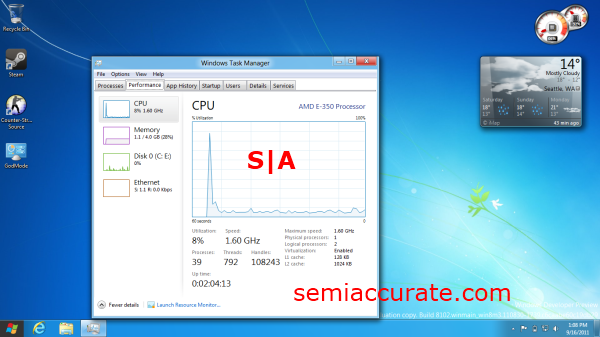 wPrime runs in administrator mode only; it errors when standard application privileges are used, and can’t detect the hardware platform when running in Windows 8. Cinebench also runs only in administrator mode. It will start as a process, but fails to display in standard mode. Steam and Counter-Strike worked just fine. The lack of issues from the two of them, both in terms of compatibility and in terms of performance surprised me initially. I doubt the server I joined in Counter-Strike had any idea it was trading packets with a platform running Windows 8; the compatibility was that good.