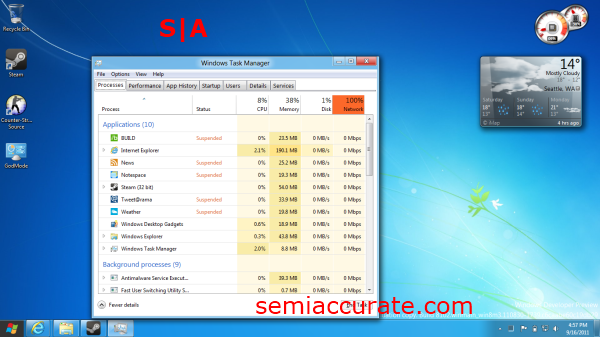 Gadgets work exactly the same as in Windows 7, which is nice because the Metro weather application would not change its location from Anaheim. This was even after I enabled location data in the control panel. The desktop weather gadget had no such issues and was happy to inform me of the overcast conditions outside my office.