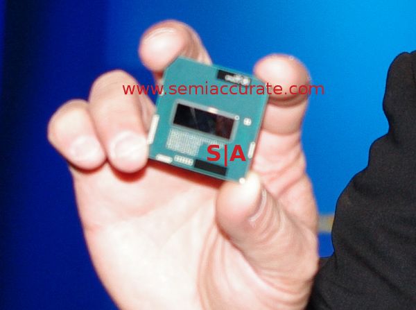 At IDF last week, Intel’s (NASDAQ:INTC) Mooly Eden held up a Haswell chip, or part of one from the look of things. This isn’t to say that Intel was trying to fake anything, they weren’t, they were just hiding a few secrets here and there.