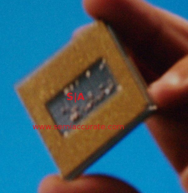 There were however some selective omissions for the sake of not tipping off the competition to Intel’s technological lead, and it is huge, the technological lead, that is. If you look at the chip, you can see several things even through our awful photography. These are the best ones we took, but for all of his skill as a world class hand model, Mooly does move quite a bit. It is going to be a while before he masters “Blue Steel”.