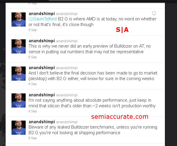 Soon after a bunch of benchmarks started showing up. These benches were not pretty, they were also not representative of final silicon. This prompted Anand Lai Shimpi to tweet that the benchmarks should be disregarded.
