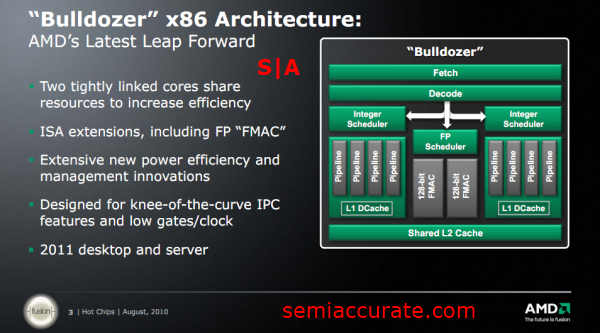 At financial analyst day 2009 AMD started to finally give us a general overview of what this new architecture would look like by introducing the module concept. The code name for the desktop part was also changed to Zambezi.
