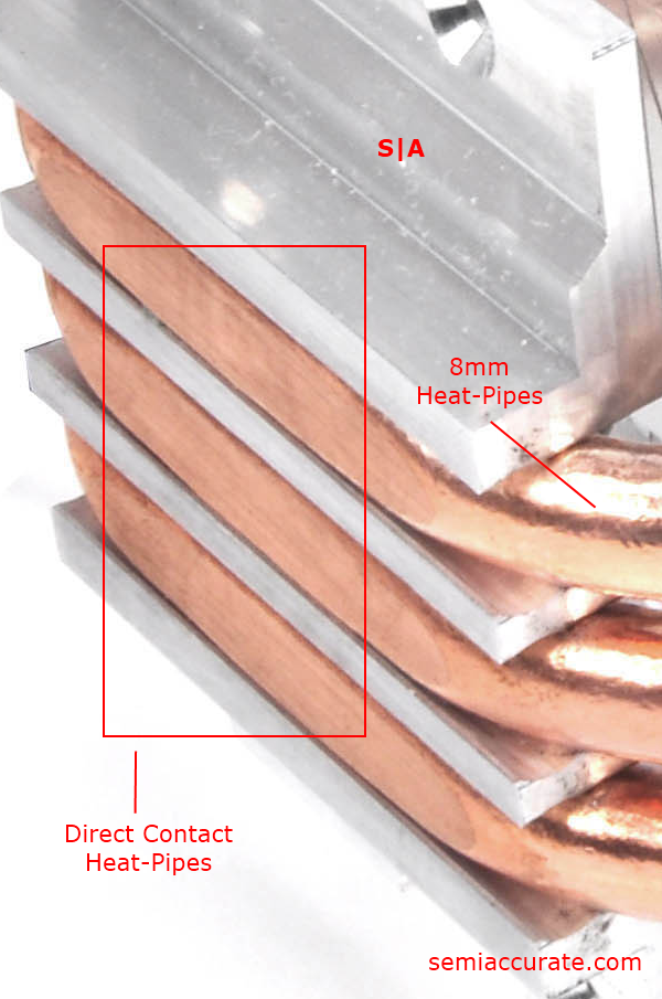 In any case the feature that really makes this otherwise unremarkable pair of coolers interesting is the three copper heat-pipes that are directly exposed at the base of the cooler. This is a design that’s really starting to come into the mainstream. In addition to the exposed heat-pipes Thermaltake gave this cooler a big leg up on its competition by using rather beefy 8mm heat-pipes rather than the more common 5mm heat-pipes like those used on the Frio Advanced from last week.