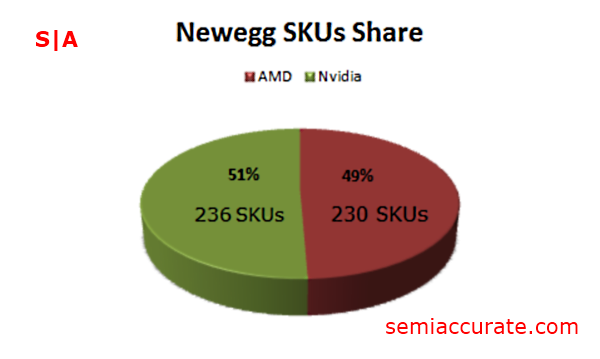 To assess the current condition in the channel we’ve pulled some numbers from online retailer Newegg. What were are doing here is looking at the SKUs that AMD and Nvidia are offering into the channel, analyzing the patterns, and then speculating on the reasons for these patterns.