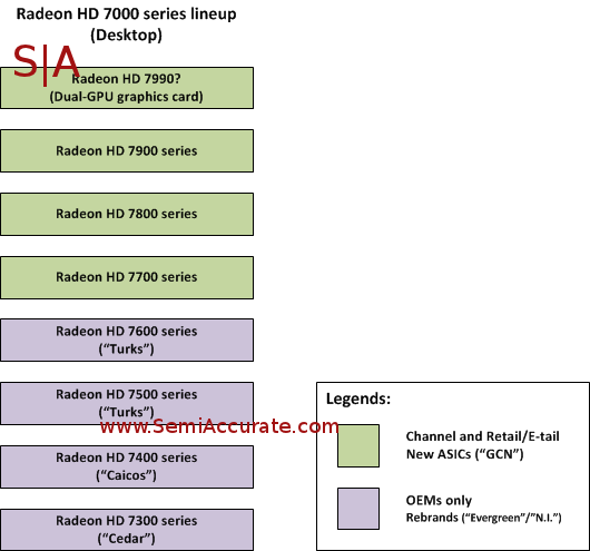 Re-branding itself is not evil, unless it is meant to create customer confusion and hidden from public documentation. The distinction would be the difference between retail and OEMs being offered a re-brand. It would seem to be less evil from the company’s point of view if it’s part of a bigger plan to improve the product mix for the customers and to improve certain key metrics within the company, certainly the re-branded low-end Radeon HD 7000 series offerings are in this category.S|A