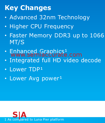 CPU performance is the same abysmal loss to Brazos that the older one is, just smaller. Luckily, GPU performance is in another league. Unfortunately, that is not a plus, the GPU loss to Brazos, or any modern ARM part, is far far far worse than the CPU loss. It is painful, but that doesn’t stop Intel from telling the press that it will beat Brazos. More troubling is the fact that the press repeats the lies, but hey, you do get what you pay for.