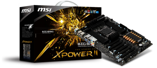 With the normal fireworks and silly string MSI is today announcing its own super high-end X79 motherboard. The Big Bang-XPower II will be a direct competitor to motherboards like ASUS’s Rampage IV Extreme and Gigabyte’s GA-X79-UD7. Sporting a 22 phase PWM design, dual 8-pin CPU power connectors, and 6-pin power connector for extra juice to its PCI-E slots the XPower II can bring a lot of current to bear. MSI is continuing its branding campaign with large banners pronouncing this motherboard’s Military Class III component certification. Basically all this means that MSI is using high quality CAPs and that all of the components on this board have passed a military certification standard detailed here.