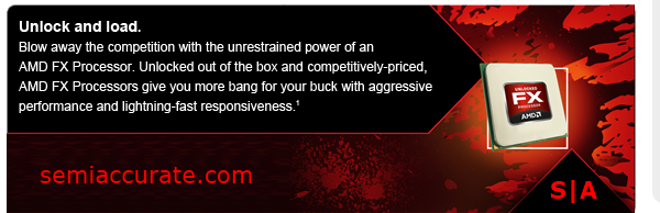 “Unlock and load.” Okay, overclocking and gun references, doing good… “Blow away the competition…” Hmm, I doubt any of the reviewers that have FX-8150’s and I5-2500K’s running side by side would say that Intel got blown away… “…with the unrestrained power of an AMD FX processor.” More than silly internet memes though, it’s really hard to take this ad seriously because of how out of touch that statement is with the competitive landscape that AMD is trying to navigate.