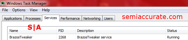 Here’s the Windows service that BrazosTweaker spawns in Task Manager. The service will start when Windows boots and quickly apply your settings.
