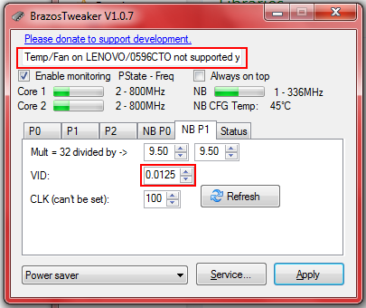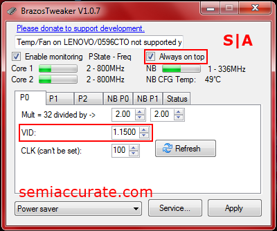 The platform I tested on was the Brazos based Lenovo X120e from our review back in June. This little ultra-portable is still pretty snappy and seems to have lost little of its initial charm from my original March 2011 purchase. After playing with BrazosTweaker and stress testing for the better part of six hours I ended up dropping the voltages on my APU’s P-States by an average of just over 15 percent.