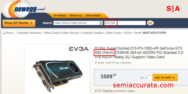 Multiple checks at Newegg have revealed no active GTX 590 SKUs as of the time of publishing. If you enter “GTX 590” into Newegg’s search bar it redirects you to a GTX 580 SKU from EVGA. And if you were to search the page for any reference to the GTX 590, using the Ctrl + F method, you would be sorely disappointed.