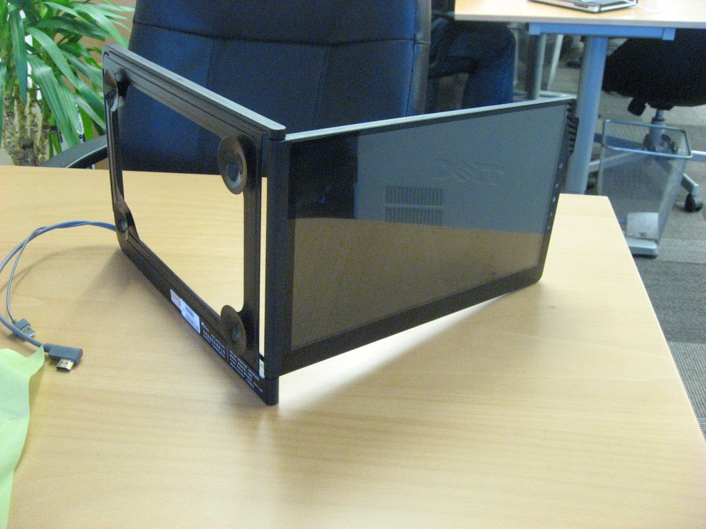 “Do not assemble On-Lap monitor on any transportations, such as car windshield, during the commute the falling of screen might cause the damage of human baby.” Ah, yeah. Thanks for the warning?