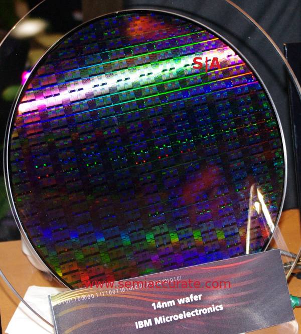 IBM was the first to show off 14nm wafers at Common Platform last week, and they are pretty. If you haven’t been following the tech lately, this is the first non-Intel FinFET to be publicly shown off. No specs were given, nor was the chip itself identified, but it is almost assuredly a test part. Enjoy.S|A