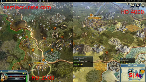 Texture quality is the biggest difference between the HD 2000 and the HD 4000 in Civ 5. Additionally the game map loses a lot of its physical attributes outside of DX 11 mode.