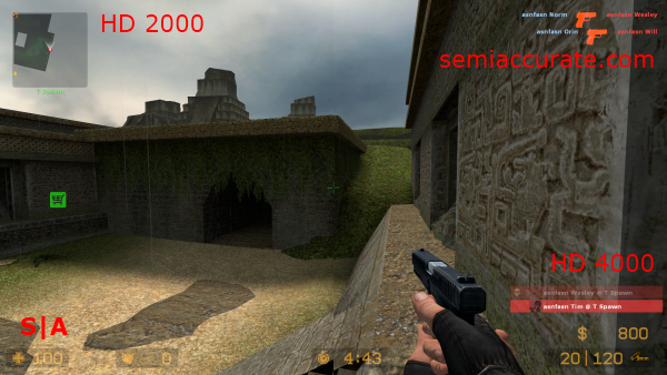 Despite using lower quality settings than the HD 4000, the HD 2000 is able to produce very similar image quality in Counter-Strike. The biggest difference between the two is the use of anti-aliasing, which is less than apparent in this side-by-side due to the scaled down nature of these images.