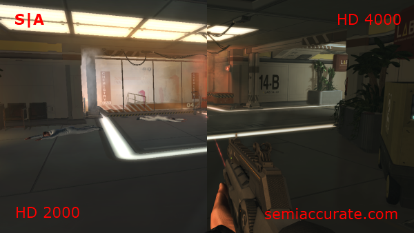 The biggest difference between our quality settings on the HD 2000 and the HD 4000 is in the shadows and lighting. As you can see the shadows on the HD 4000 are more realistic and moody, where as on the HD 2000 side the shadows are on a pretty even gradient.