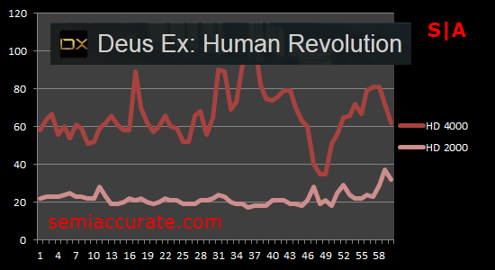 This direct match up again shows that the HD 4000 provides about double the performance of the HD 2000 at equivalent settings.