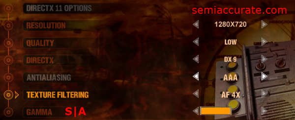 I was forced to run the game in its DirectX 9 mode, drop the graphics quality to its Low pre-set, and then lower the resolution to a mere 720P. And to top it off the game only barely crossed over into playable territory at these exceedingly low settings. Actually, the only way we could have further reduced our quality settings would have been to drop our resolution to sub-HD settings.