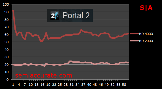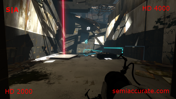 One of the biggest advantages of playing Portal 2 on the HD 2000 is stability. We didn’t experience any mid-game play lock-ups or crashes, like we did when we tested the HD 4000 in this game.