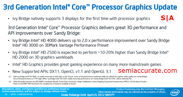 Let’s stop for a minute and review what Intel is promising with its lower-end Ivy Bridge GPU, the HD 2500