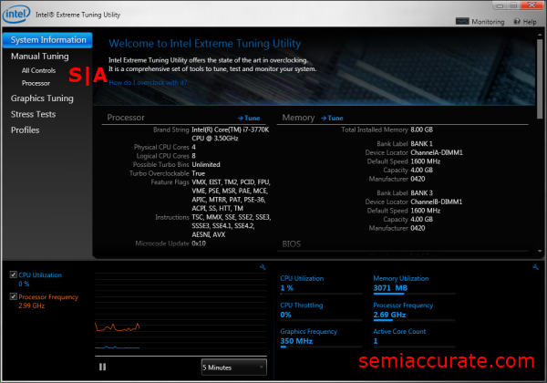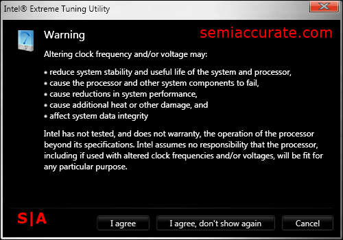 Here we have the EULA type warning that greets you click on the Manual Tuning tab. Like most other tuning apps, Intel’s is not going to be taking responsibility if you tweak one of the settings just a bit too far and end up with a dead chip.