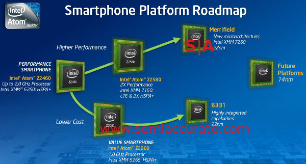 Intel has two new 22nm phone chips to talk about, and one platform gets pushed out to 2014. The two new ones are Merrifield and 6331, Future platform is pushed out until the, err, future.