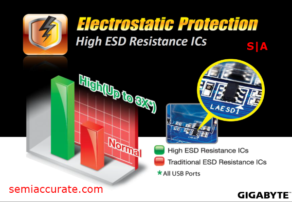 In addition to static protection Gigabyte is also offering added protection against power surges. <sarcasm> Although I doubt any of you are without the proper anti-surge power bar between your computer and your local power outlet. </sarcasm>