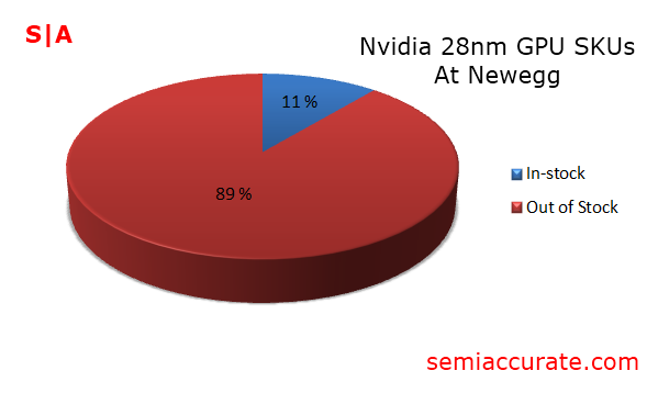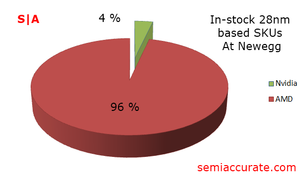 Comparing the availability of Nvidia’s 28nm products to AMD’s directly we can see that only four percent of the in-stock SKUs on Newegg are from Nvidia. Make of that what you will, but the supply situation of Nvidia’s GTX 600 series is looking pretty grim in light of what AMD has managed at this point. Let hope this supply shortage ends quickly, or we’re bound to see AMD’s prices start to creep up in the next few months. Until next time, try and stay in stock.S|A