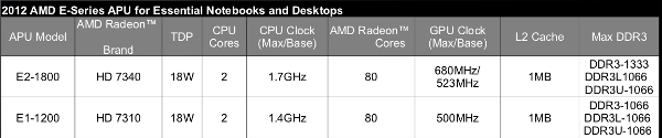 The short story is take Brazos, and bump the speed a little at the same TDP, add USB3, and up the marketing name of the GPU to HD7000 levels. The raw specs are…….