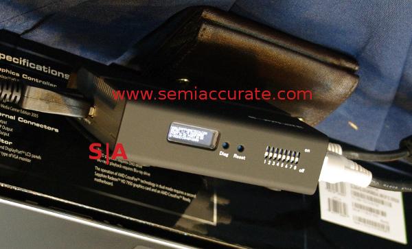Another departure from the expected is the line of video conversion widgets. The idea is pretty simple take a DP or DL-DVI input and split it in to two DVI outputs. The device fakes a single large, 3840 * 1080 in this case, monitor, so you could potentially have 12 outputs from a single AMD GPU. The DIP switches are also a really neat touch, you can pick formats and do bezel correction in hardware, no finicky or OS sensitive software to cause problems. It can also clone video in hardware, something MS doesn’t want you to do anymore. Expect these to come in around $169 real soon.
