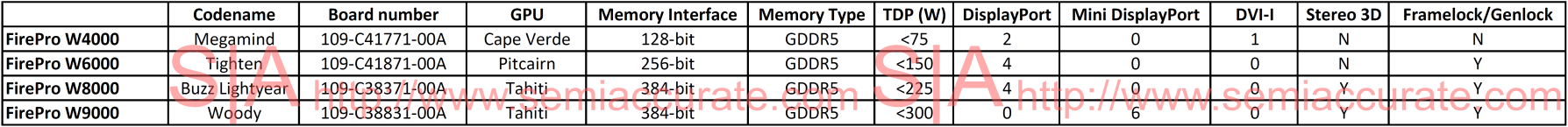 Besides the known FirePro W9000, and W8000, this time, we have FirePro W6000 and W4000 for mainstream graphics workstations.