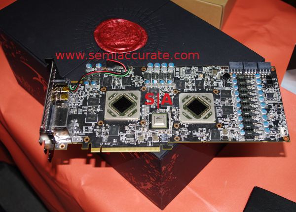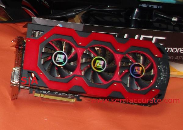 The most obvious part they were showing was a dual HD7970 card called the Devil 13, two 7970s on a PCB. This is different from the impending New Zealand/HD7990 because that card uses selected low leakage GPUs, and is usually clocked down a tad from stock to keep power in check.