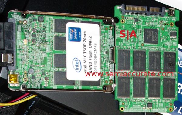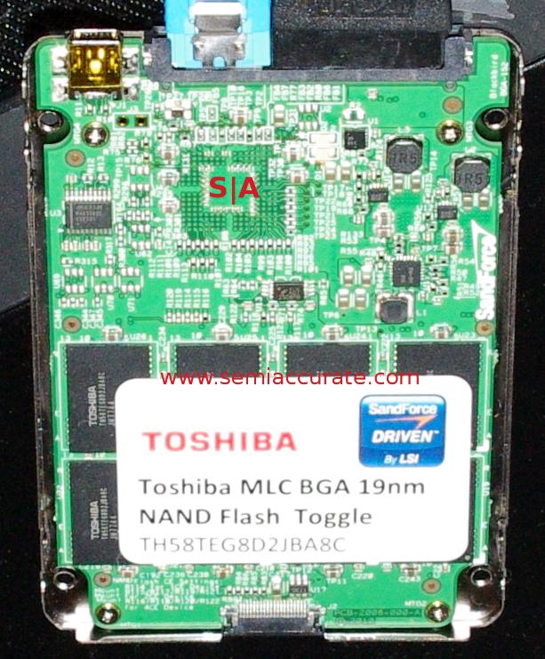 One thing Sandforce likes to do is point out their support of upcoming devices and geometries. In this case, they did so by showing off their controller in SSDs bearing Toshiba 19nm Toggle NAND flash and Intel 20nm ONFI2 flash. Not much more to see than bleeding edge semiconductors, even if they all look like square black plastic blocks.S|A