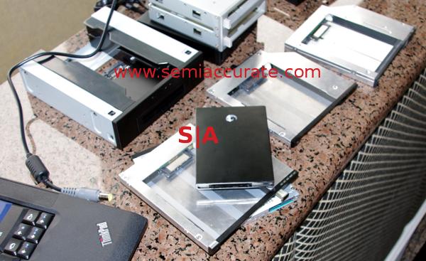 As you can see, the devices themselves are not that different from USM drives and bays, but there is one big difference, the new ones now fit within the height of a laptop CD bay. You know, those useless optical disks that for some reason add cost and weight to an otherwise useful laptop? Now you can remove them, if you bought a decent laptop to begin with, and add a worthwhile device that is not a battery.