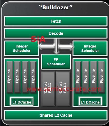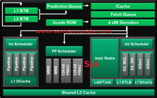 That brings up the other point, 30% is borderline crazy for an increase, especially one that directly relates to performance. The decoders were the main bottleneck in the architectural paradigm up to this point, so most of that should carry over to the end user on single threaded code. The problem? What was the starting point again? Oh yeah, not so hot. 30% increase in IPC from a current Intel core would be greeted with blank stares and incredulous looks from people who understand the tech. 30% from Bulldozer’s starting point is just enough to get AMD back in the game. That said, it’s about time.