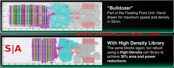 That brings us to the other end of the spectrum, high density libraries (HDL). As their name implies, they are libraries used to design chips, and they prioritize area over speed. Bulldozer has never had a problem with raw clock rate, in fact it is the current world record holder in that regard. Piledriver will undoubtedly go faster on a raw clock basis, and likely have better IPC while doing it, but those chips are not out yet. The take home message is that raw clock rate is not a big problem for this architecture.
