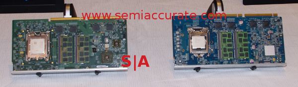 This is an interesting split, the Xeon should have more CPU grunt, but the AMD box offers more cores to sell as VMs with more memory per core. Don’t discount the value of this to marketing wonks, it matters more than mythical performance numbers to many end users. This also strongly implies that AMD has a four channel memory solution, so the Opteron in the AMD card is likely a 2-die solution.