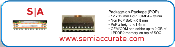 Above is the diagram and picture we could not show you earlier, the PoP SoC setup that Intel has devised for Penwell. Notice how it it is a normal PCB with a second PCB on top as a spacer. Mounted on top of that is a third PCB that the system memory is placed on. As the diagram says, OEMs can mount up to 2GB of LPDDR2 to this board, but cost and power use will likely keep that number down in practice. This stacking for memory is probably one of the main reasons why the system board shrunk, no memory, no traces to memory, and everything in the vertical plane is the key.