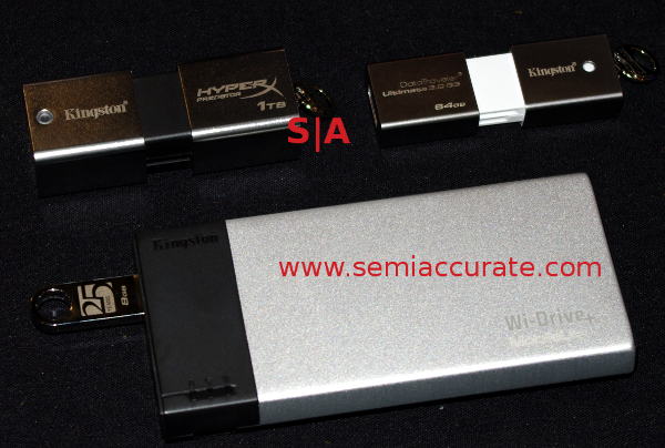 At CES, Kingston was showing off two new memory sticks and an update to their Wi-Drive device. The best part was the new form factor for the Kingston drives, they are pretty slick.