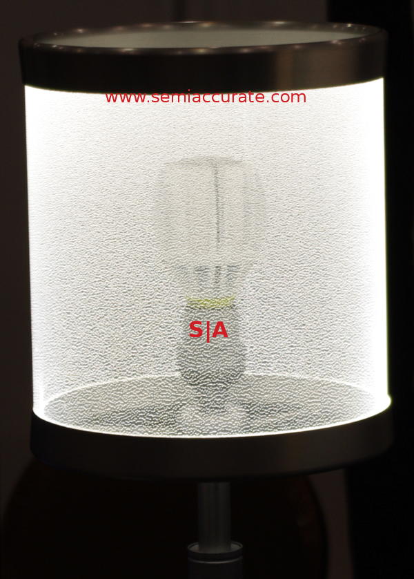 We mean that literally, the picture above is the new Rambus light bulb inside a second light using their backlighting tech. The spots are actually a good thing, they distribute the light in a fairly even way, exactly what you want in a laptop. That is further spread by other optical layers in a laptop screen for a nice even light. If you have ever used the first few generations of LED lightbulbs, you might have noticed that most suffer from very direct and uneven light distribution.