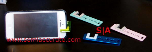 Last up is a nifty little cell phone holder called the iBite. It is just a slab of anodized aluminum with a chunk of rubber around one of the cut out holes. If your phone doesn’t have a kickstand, the iBite is a useful tidbit to clip on to your keyring through the non-rubber coated hole. If your phone does have a kickstand, it is likely nigh on useless like most of those things, so who cares? iBite is a bottle opener short of being a must have tool, but sadly Inwin has not decided on production yet. Even without the bottle opener, I would probably pick one up as an impulse buy in a checkout lane, wouldn’t you?S|A