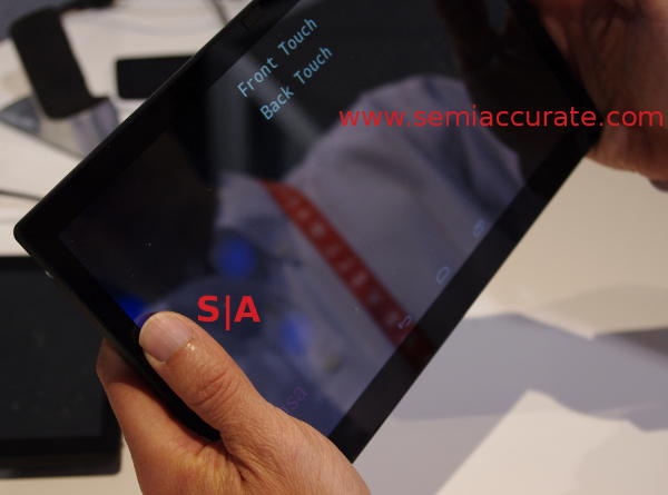 Like all simple concepts, Sensa is a hard problem to solve technically speaking, but Synaptics did. If you are holding a tablet, you probably have four fingers on the back, and your thumb on the front. If that thumb touches the edge of the screen, then a swipe elsewhere becomes a zoom or a shrink, and things get weird. How do you tell a finger touch on the front from a, err, finger touch on the front? Not easily.