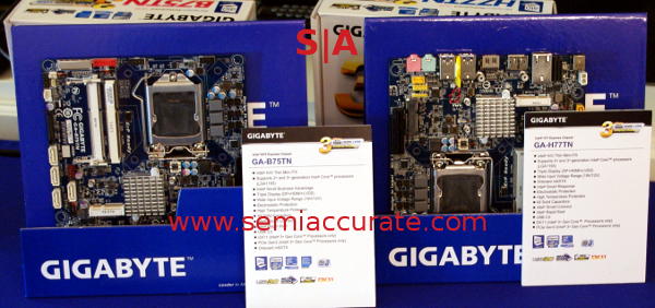 The next one was something that Gigabyte told us about at IDF, the thin ITX form factor boards. These are going to be the catalyst for an upcoming revolution in white box/DIY all-in-one (AIW) form factor machines that Intel hopes will flood the market soon. While AIW computers are less noxious than some ‘new and exciting’, not our view, form factors, we are not exactly blown away by them.