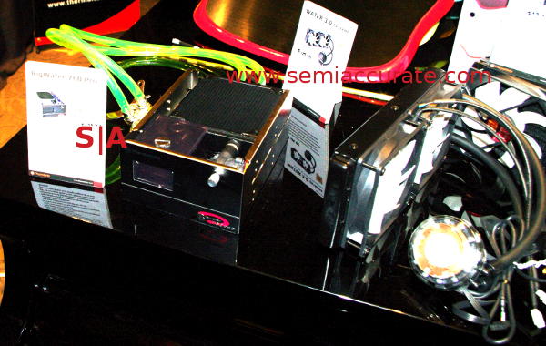 Moving on to a different topic, we have the long overdue and very welcome comeback of some Thermaltake water cooling products. The BigWater 760 Pro is the classic dual 5.25″ drive bay CPU cooler that the company used to make many of. This updated one has a much wider radiator than before, a variable speed fan, 3/8″ tubing, and a universal CPU mounting kit. If nothing else, what else are you going to use a 5.25″ bay for? The Water 3.0 Extreme is the more common type with two 120mm fans and a 240mm radiator to shed excess heat through. They list for $139 and $129 respectively, but for only $10 more, we would take the BigWater every time.