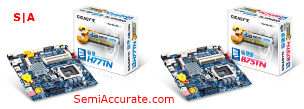 Today Taiwanese motherboard maker Gigabyte launched two new Thin Mini-ITX motherboards. These new offerings, called the H77TN and the B75TN are aimed primarily at enabling enthusiasts to construct their own All-in-one (AIO) computers and are 43 percent thinner than standard ITX motherboards.