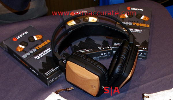 At MWC, Griffin was showing off a product that was not revolutionary, evolutionary, or even unique, but their wood headphones were quite nice. Not only that, they had wood ear buds and cables to match.